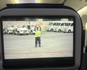 何を言ってるんだと思うかもしれませんが、乗った飛行機の機外カメラ映像が個人モニターに映ります笑